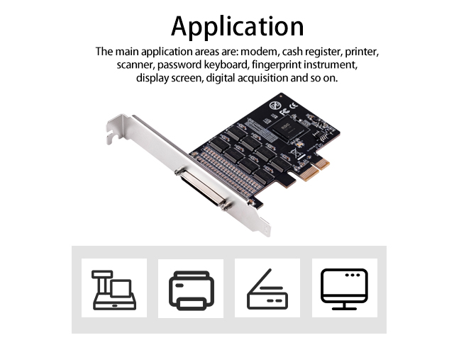 Fully compliant with PCI-Express Base Specification Revision 1.1,Single-Lane (x1) PCI-Express with throughput up to 2.5Gbps,Supports x1, x2, x4, x8, x16 (lane) PCI Express Bus connector keys.