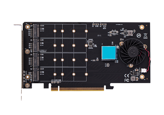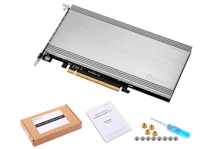 | Features • 4 x PCIe 3.0 x4 to M.2 Ports • Dedicated PCIe 3.1 x4 bus bandwidth • Integrated TRIM & S.M.A.R.T. Monitoring with TBW Tracking • PCI Express 3.1 x16 Lane Host adapte • Support PCIe 3.1,3.0, PCIe 2.0 motherboard • Compliant with PCI Express M.2 specification 1.0 • Supports data transfer up to 2.5Gb/s,5Gb/s,8Gb/s • Connects PCIE motherboard to NGFF M Key SSD • Supports 2230, 2242, 2260, 2280 size NGFF SSD • 8 screw holes available to fix PCB board • Easy installation & no driver required • Independent, Stand Alone NVMe SSD Solution • Smart PCIe Switching Built-In • Robust, Compact & Efficient – Shield & Cool Your SSD’s System Requirements • Supports Windows 7,8,8.1 and 10 • Windows server 2K8,2K12,2K16 • Mac • Linux Kernel 3.3 or later Package Contents • 1 x PCIe x 16 to 2 x M.2(M-Key) card • 1 x User Manual • 4 x Screw Drive • 8 x NGFF M.2 SSD mounting screws |