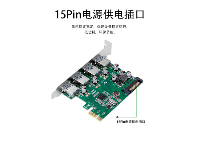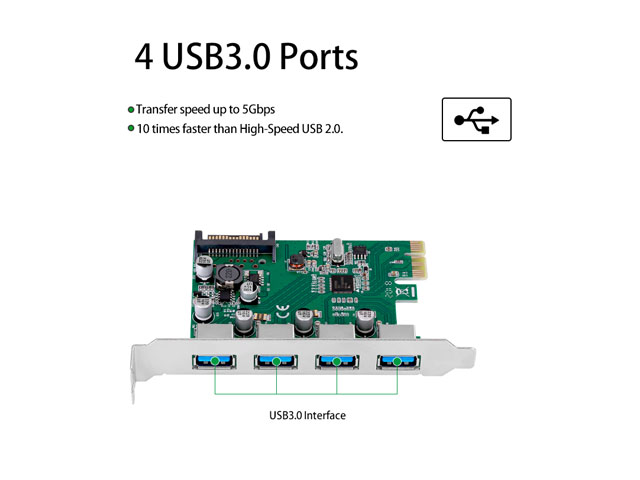 Supports the following data transfer rate:USB 2.0 mode up to 480 Mbps,USB 3.0 mode up to 5 Gbps,Power Input: 15-pin SATA CD-ROM Type Power Connector ,Max. 5V/900mA power output to each USB 3.0 Port(with PSU connected).