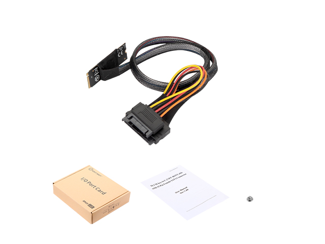 • 1 x M.2 M-key to U.2 SFF-8639 Cable with 15 Pin Female SATA Connector