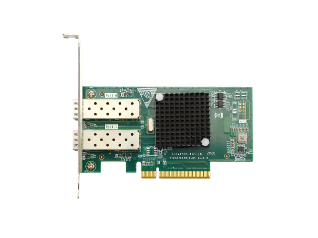 PCIex8 to 2 Port SFP+ 10G Ethernet network adapter,Speed/port: 10Gbps (fiber for servers and workstations),Ethernet controller: Intel 82599ES,Connector and cable medium: LC fiber optic.