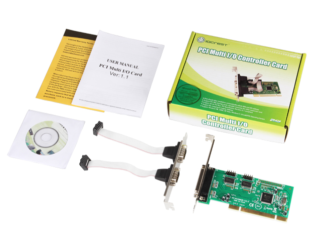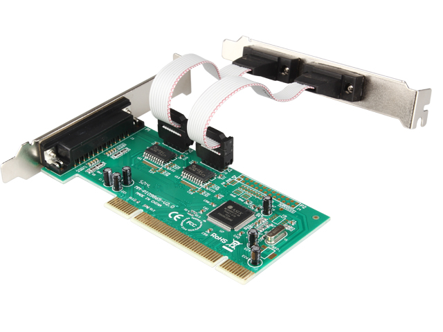Extend two DB9 serial ports and one DB25 parallel ports in computer with PCI slot.