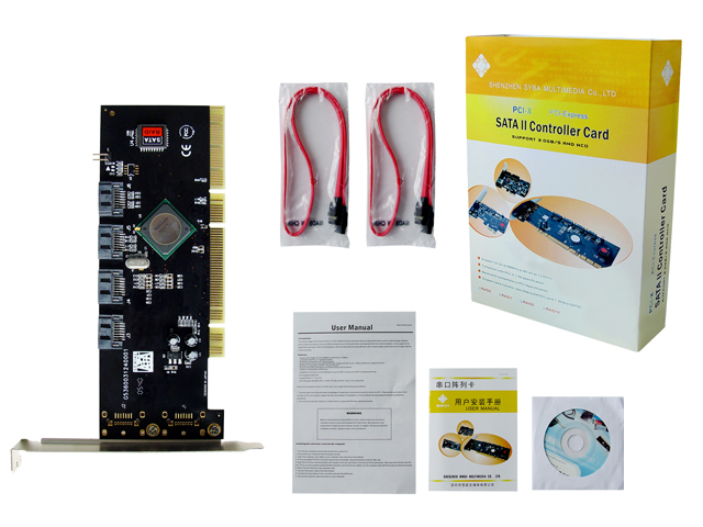 Functional description,Extend four SATAII interfaces from computer with PCI-X interface,Supports the arry function,Compatible with PCI interface.