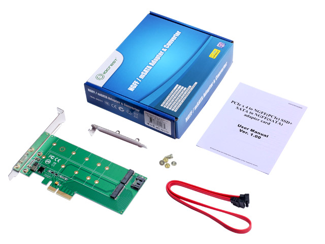 • 1 x PCIE X4 to NGFF(PCIe) SSD+SATA to NGFF(SATA)adapter card