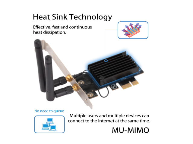 environments comparing to 802.11ac. With this PCIE Wi-Fi Card, you can