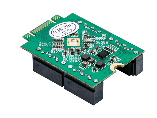 | Product description: | Feature •2-Lane M.2 PCI-Express 2.0 interface (B + M Key). •Support communication speed of 2.5Gbps and 5.0Gbps. •Support IDE programming interface register for the SATA controller. •Support AHCI programming interface register for the SATA controller. •Support Message Signaled Interrupt(MSI). •Compliant with Serial ATA Specification 3.0. •Support communication speed of 6.0Gbps,3.0Gbps,1.5Gbps. •Support programmable transmitter signal levels. •Support Gen 1i,Gen 1x,Gen 2i,Gen 2m,Gen 2x,and Gen 3i. •Support four SATA Ports. •Supports Native Command Queuing (NCQ) •Supports Hardware RAID 0, 1, 10 and HyperDuo •HyperDuo mode supports Safe mode (Mirrored Protection) and Capacity mode(Cost-Optimized) •FIS based Port Multiplier Note: Not Supported RAID on PM System Requirements •Windows Server 2003,2008,2012,2016 •Windows XP, Vista, 7, 8,8.1,10 •Linux 2.6.x and above •Mac OS 10.3 or later version Package Content 1 x M.2(PCIe) to SATA 6G adapter 1 x User Manual 1 x Driver CD 4 x SATA Cable Note: Contents may vary depending on country and market. |