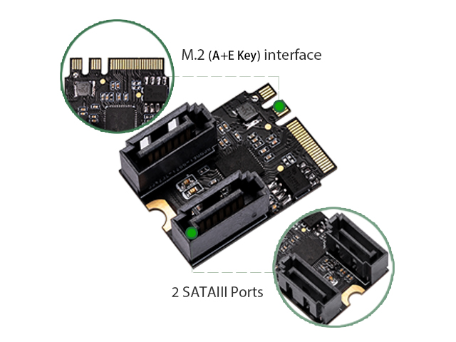 • 1 × M.2(A+E Key) to 2-Port SATA Card